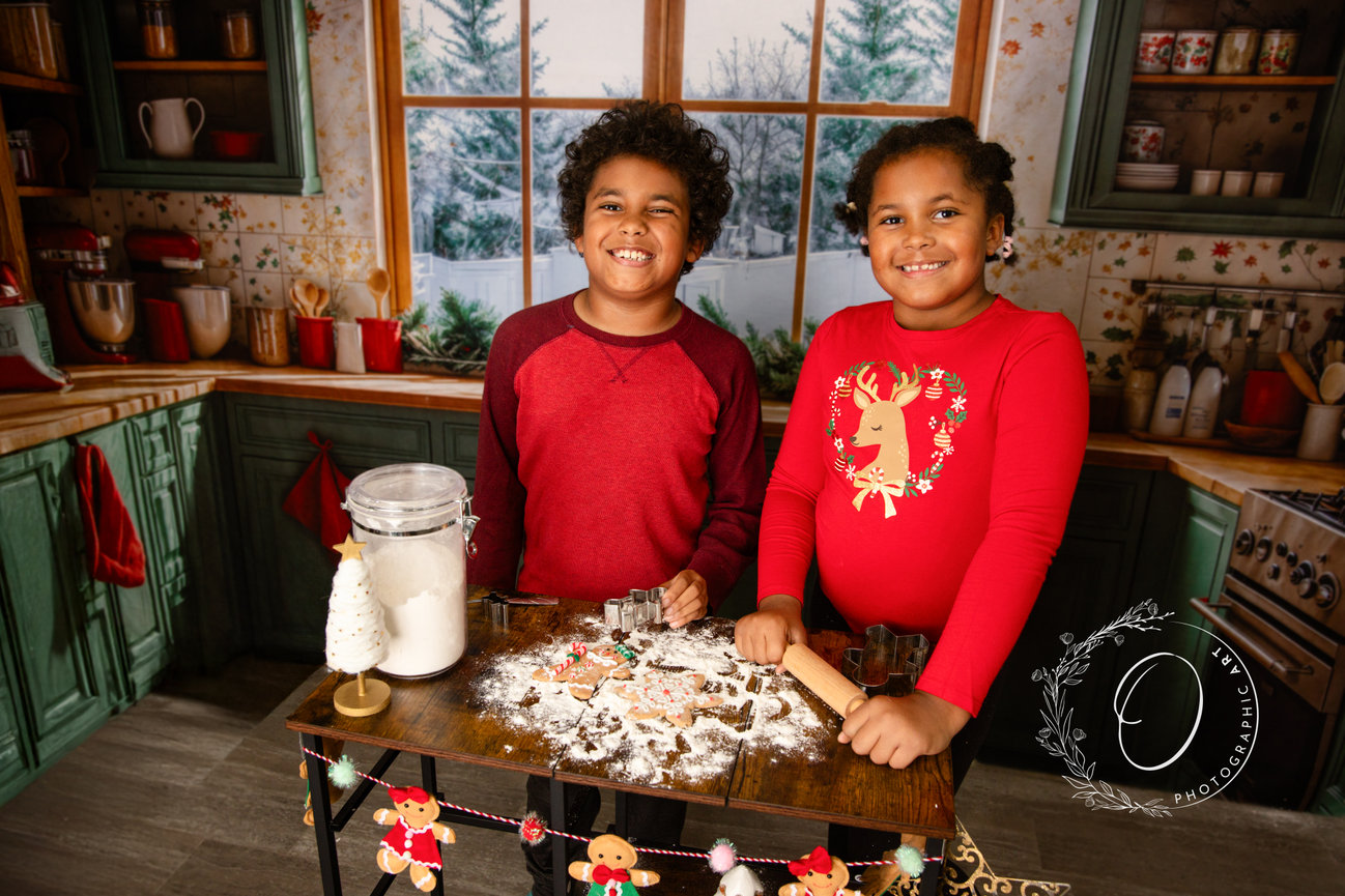 This year’s in-studio holiday sessions are inspired by the cozy, joy-filled moments we all treasure most: baking cookies together, sneaking tastes of frosting, and giggling in a kitchen filled with warmth and love. From matching pajamas to your Sunday best, this setup beautifully blends classic elegance with fun, family-centered charm.